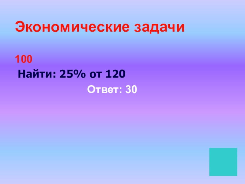 Экономические задачи100 Найти: 25% от 120