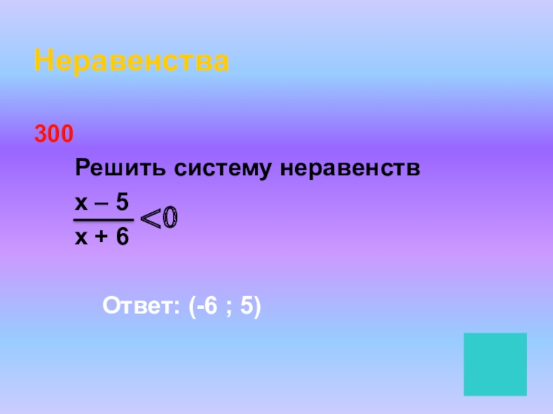 Неравенства300   Решить систему неравенств   x – 5   x + 6