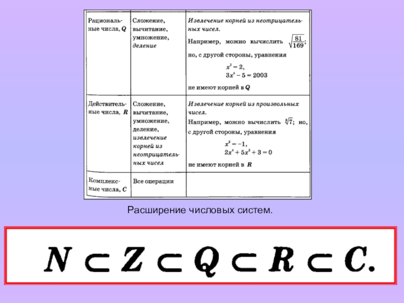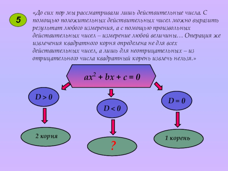 Рациональные и иррациональные числа образуют множество действительных чисел. Но и действительных чисел недостаточно для того, чтобы решить любое алгебраическое уравнение.