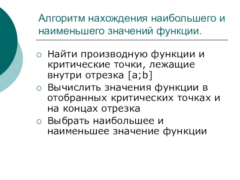 Слайд 11Алгоритм нахождения наибольшего и наименьшего значений функции.