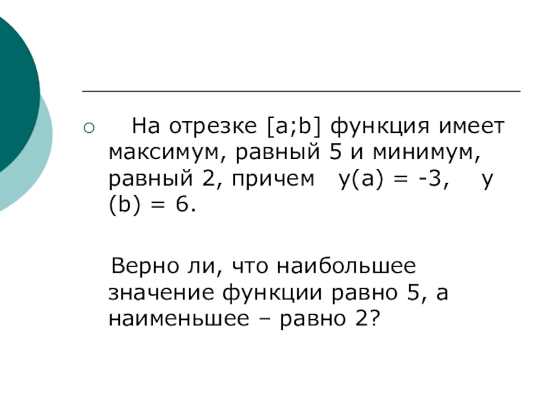 Верно ли, что наибольшее значение функции на отрезке [a;b] равно 7?