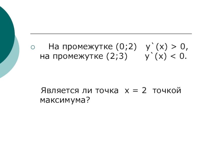 / 2 = 6х2-0,5 х V`(x) =12x - 1,5х2, 12x - 1,5х2 = 0, 1,5х•(8 –х)=0, х=0 , х=8.
