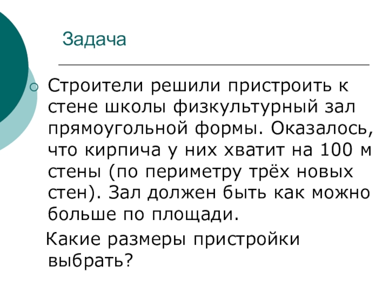 Строители решили пристроить к стене школы физкультурный зал прямоугольной формы. Оказалось,