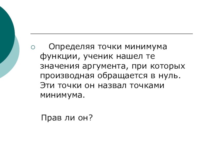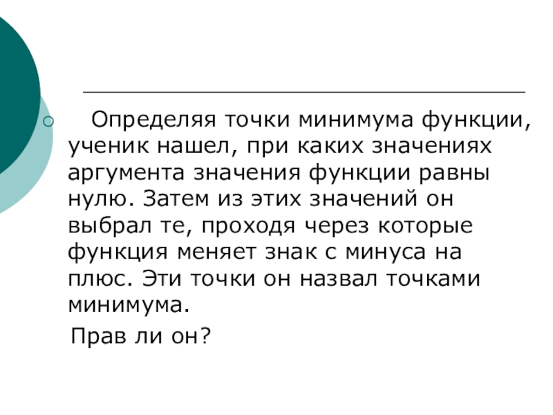 Определяя точки минимума функции, ученик нашел те значения аргумента,