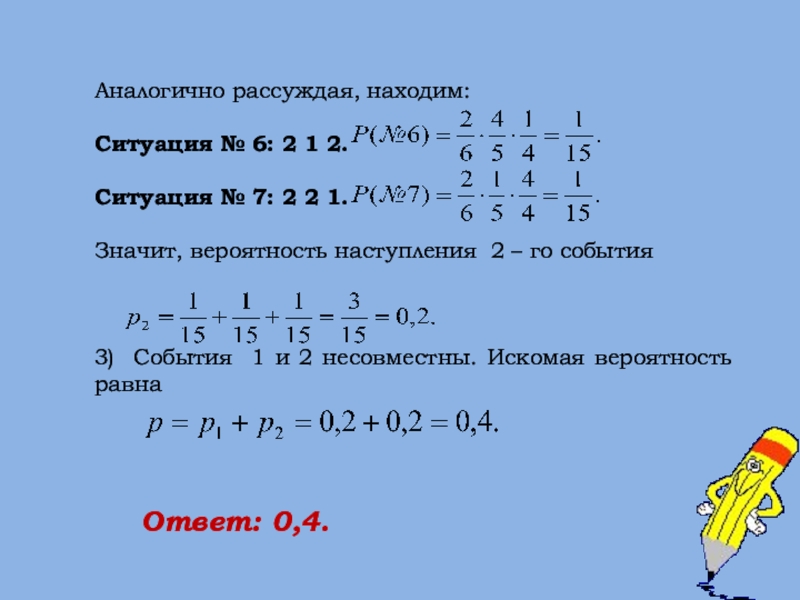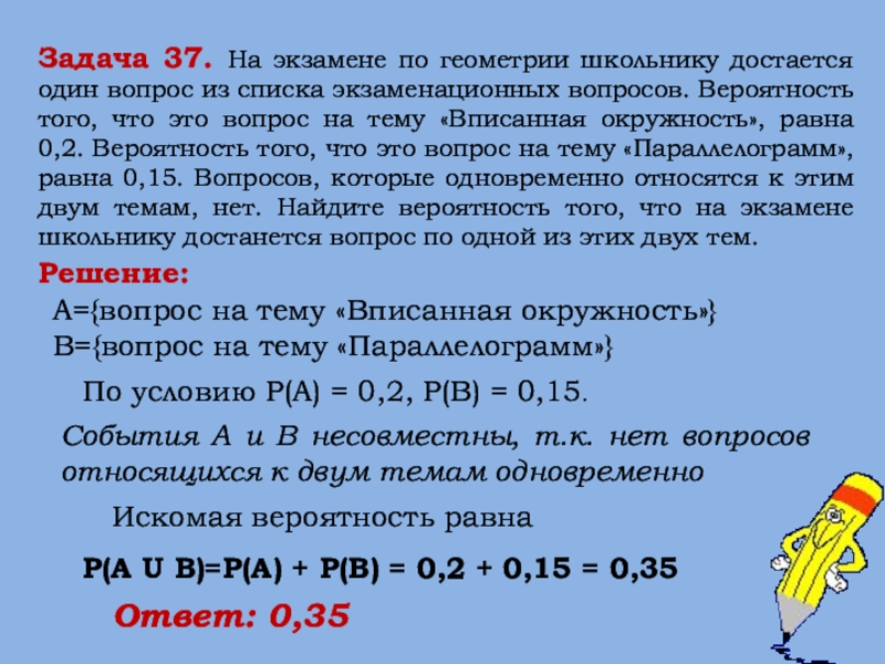 Искомая вероятность равна вероятности объединения несовместных событий А и В.