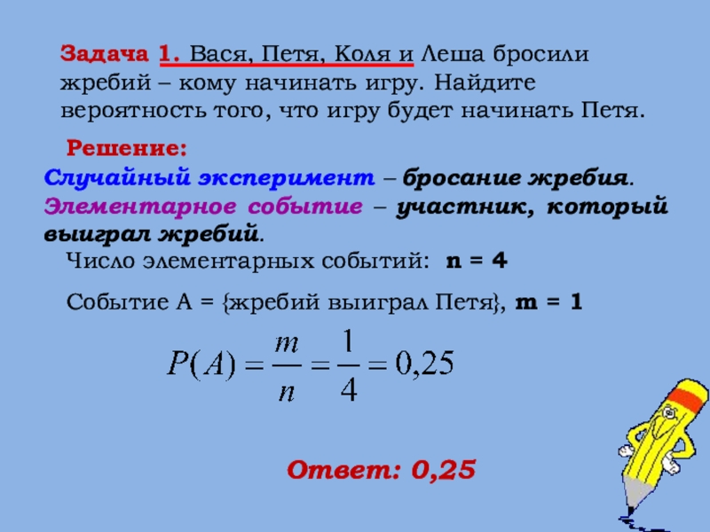 Р(А) равна сумме вероятностей элементарных событий, благоприятствующих этому событию.