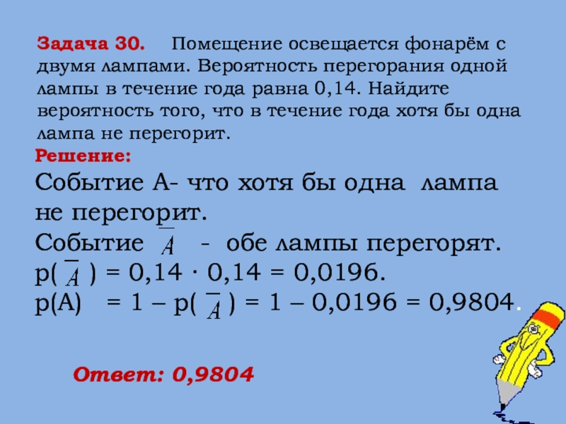 Событие А = « новый электрический чайник прослужит больше года». Р(А) = 0,98.