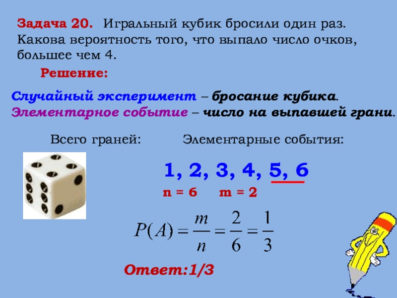 Задача 4. В среднем из 1000 аккумуляторов, поступивших в продажу, 6 неисправны. Найдите вероятность того, что купленный аккумулятор окажется исправным.