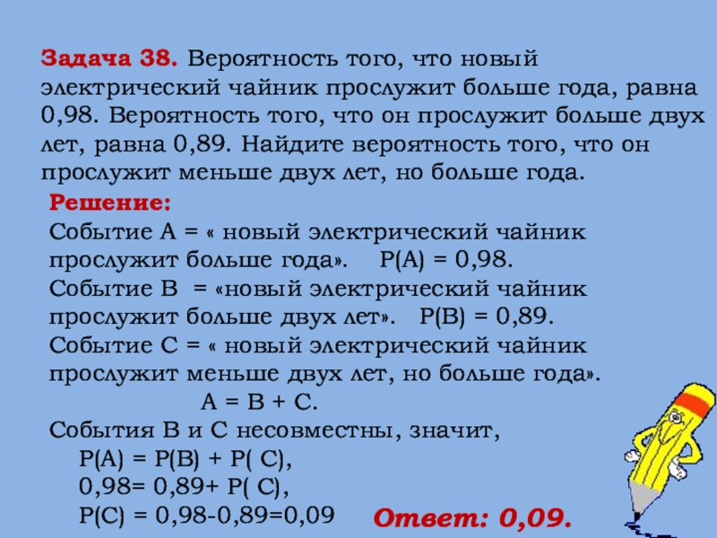 Событие С = « новый электрический чайник прослужит меньше двух лет, но больше года».