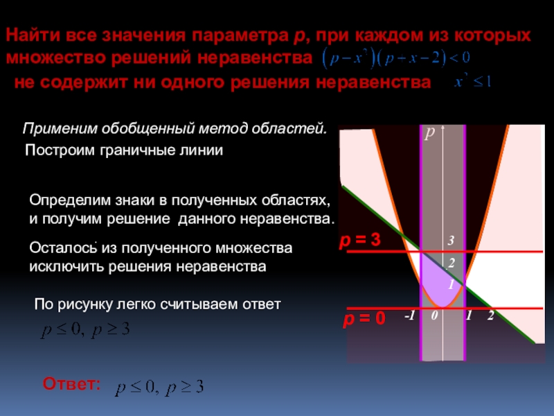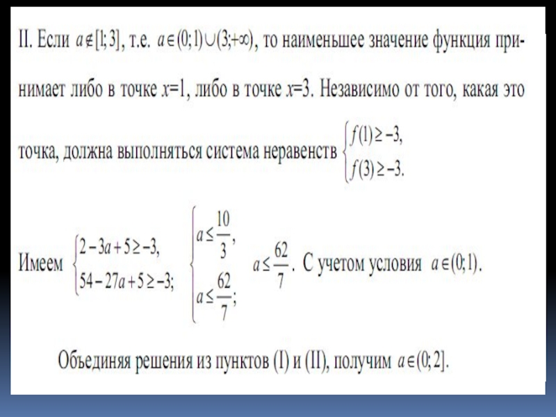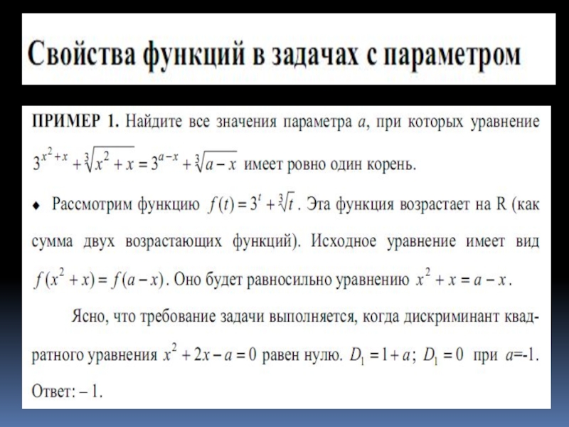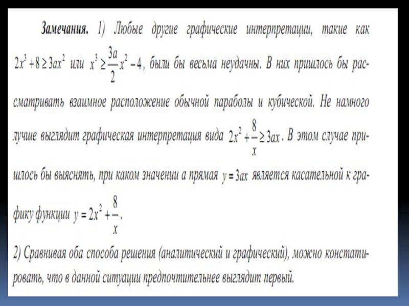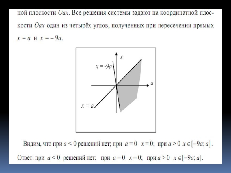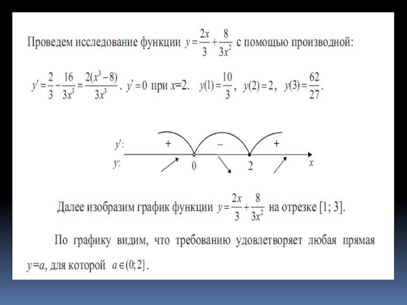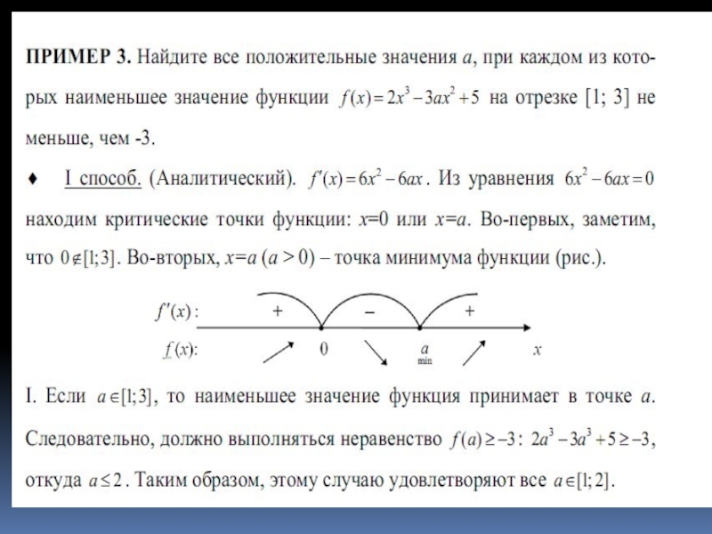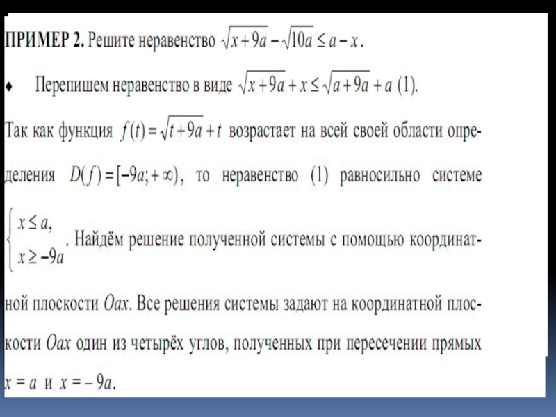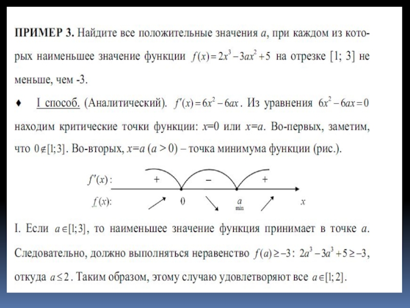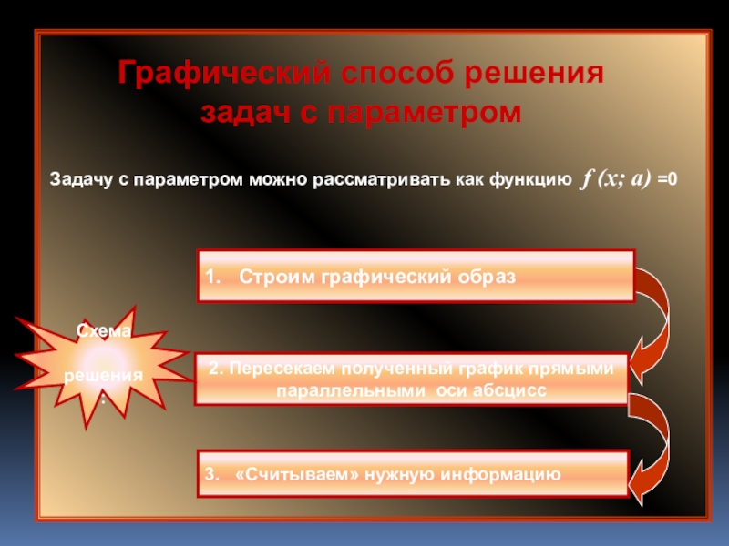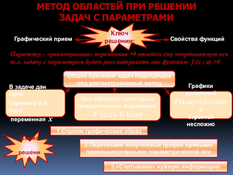 Параметр – «равноправная» переменная отведем ему координатную ось т.е. задачу с параметром будем рассматривать как функцию f (x ; a) >0
