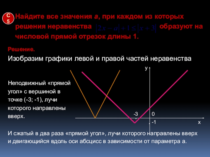И сжатый в два раза «прямой угол», лучи которого направлены вверх и двигающийся вдоль оси абсцисс в зависимости от параметра а.
