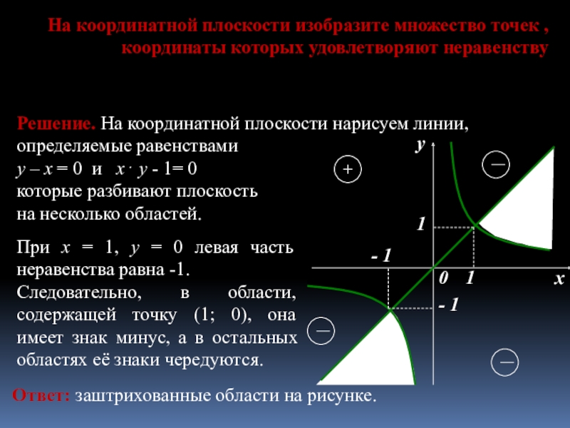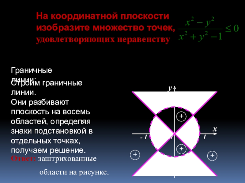 Следовательно, в области, содержащей точку (1; 0), она имеет знак минус, а в остальных областях её знаки чередуются.