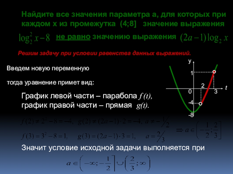 График левой части – парабола f (t), график правой части – прямая g(t).