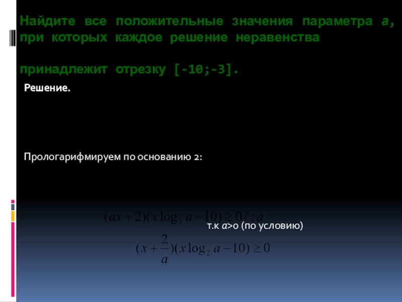 Найдите все положительные значения параметра а, при которых каждое решение неравенства