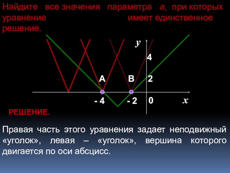 Правая часть этого уравнения задает неподвижный «уголок», левая – «уголок», вершина которого двигается по оси абсцисс.