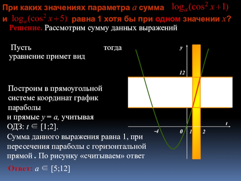 При каких значениях параметра а сумма и равна 1 хотя бы при одном значении х?