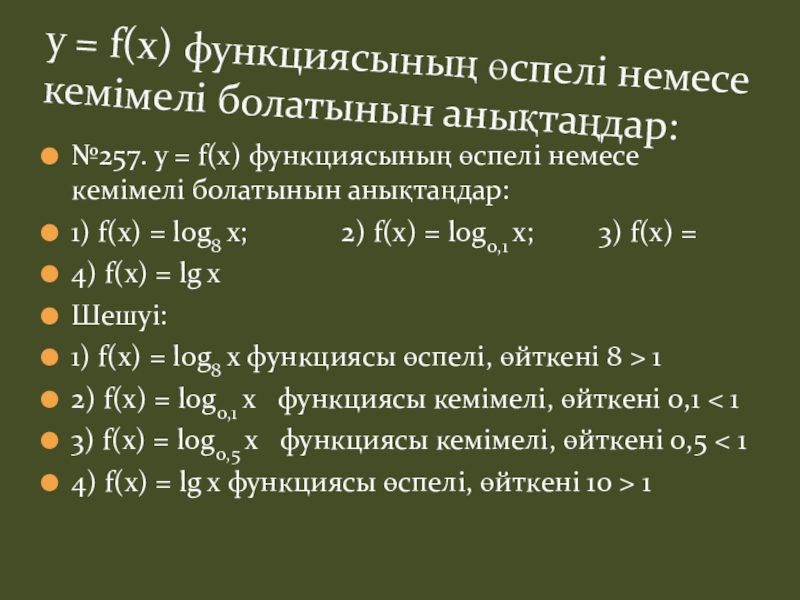 у = f(x) функциясының өспелі немесе кемімелі болатынын анықтаңдар: