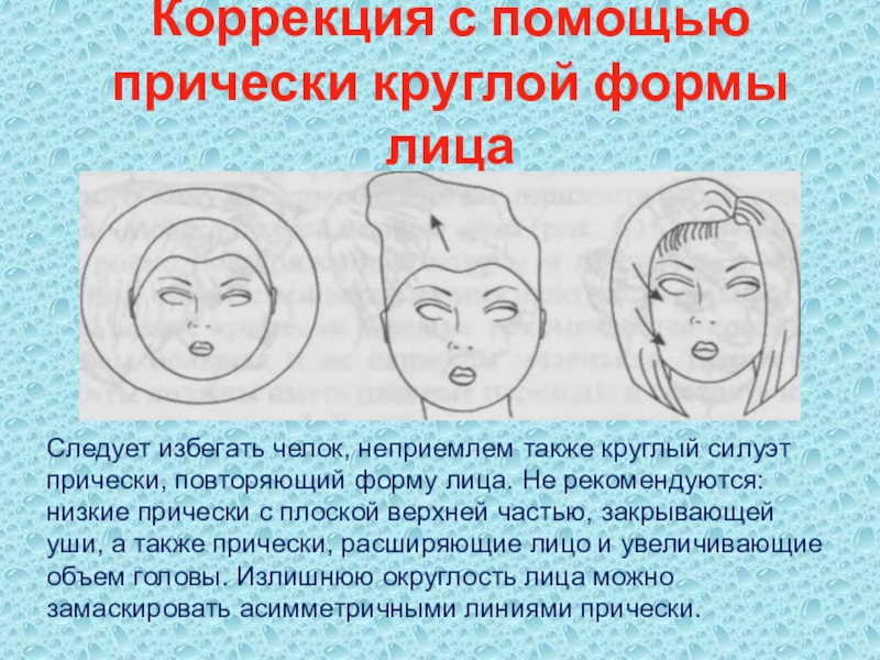 Слайд 17Коррекция с помощью прически круглой формы лица