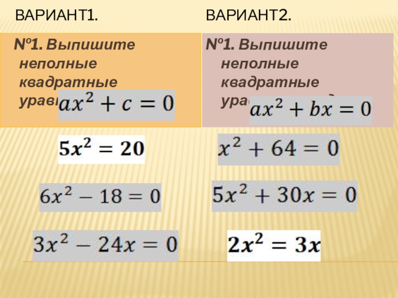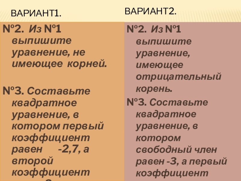 №2. Из №1 выпишите уравнение, имеющее отрицательный корень.