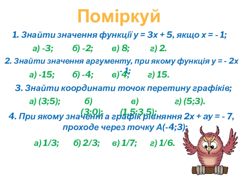 2. Знайти значення аргументу, при якому функція у = - 2х - 1;