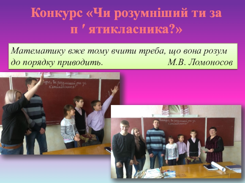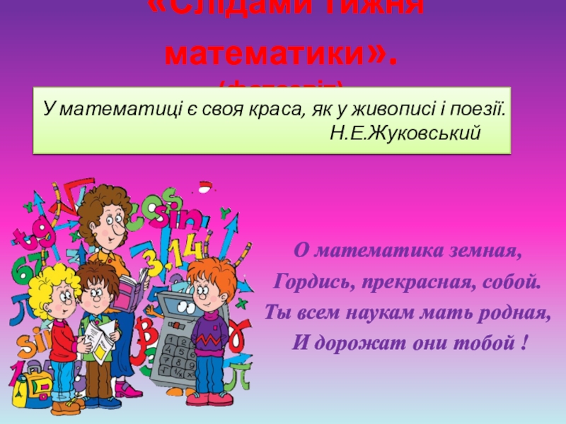 Математику вже за те любити варто, що вона розум до ладу приводить. М.В. Ломоносов