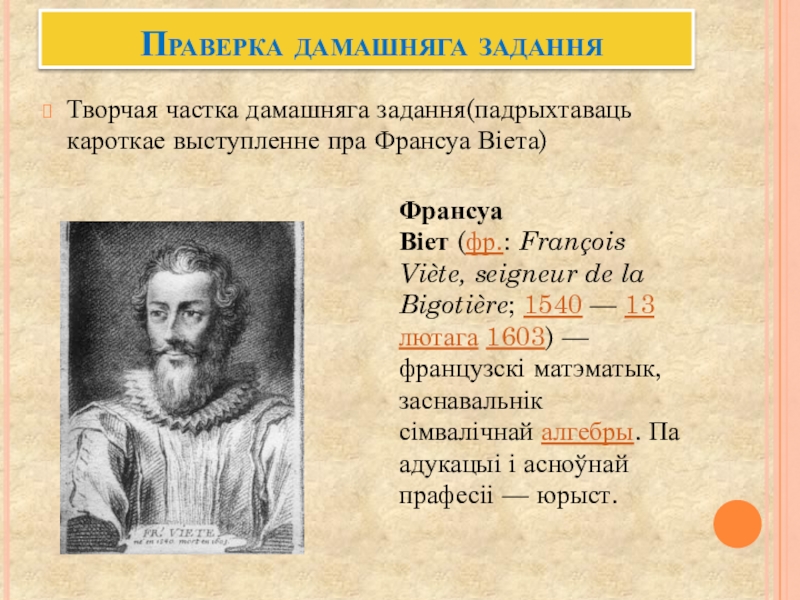 Франсуа Віет (фр.: François Viète, seigneur de la Bigotière; 1540 — 13 лютага 1603) — французскі матэматык, заснавальнік сімвалічнай алгебры. Па адукацыі і асноўнай прафесіі — юрыст.