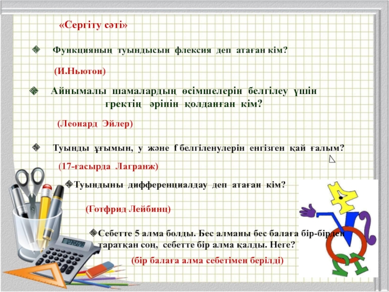 Туынды ұғымын, у және f белгіленулерін енгізген қай ғалым?