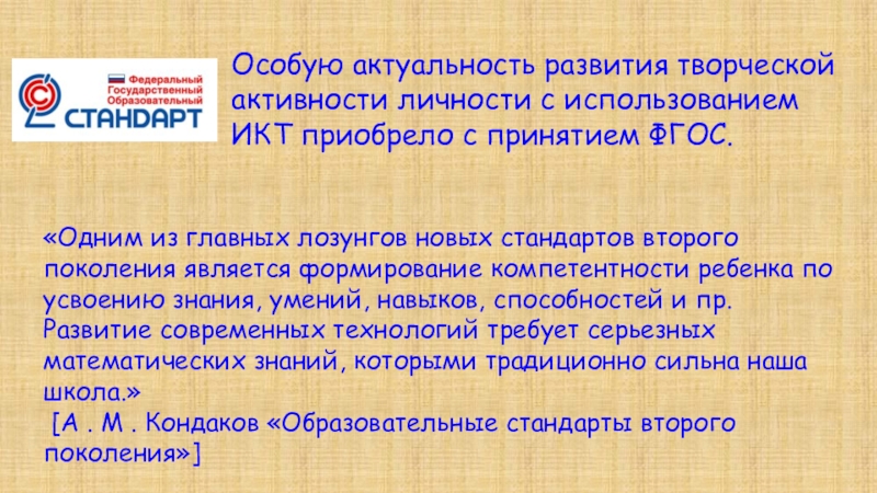 [A . М . Кондаков «Образовательные стандарты второго поколения»]
