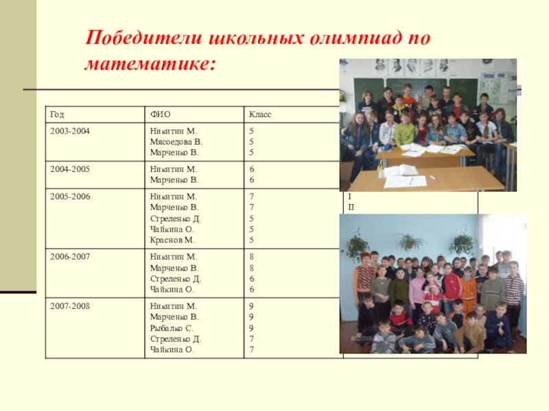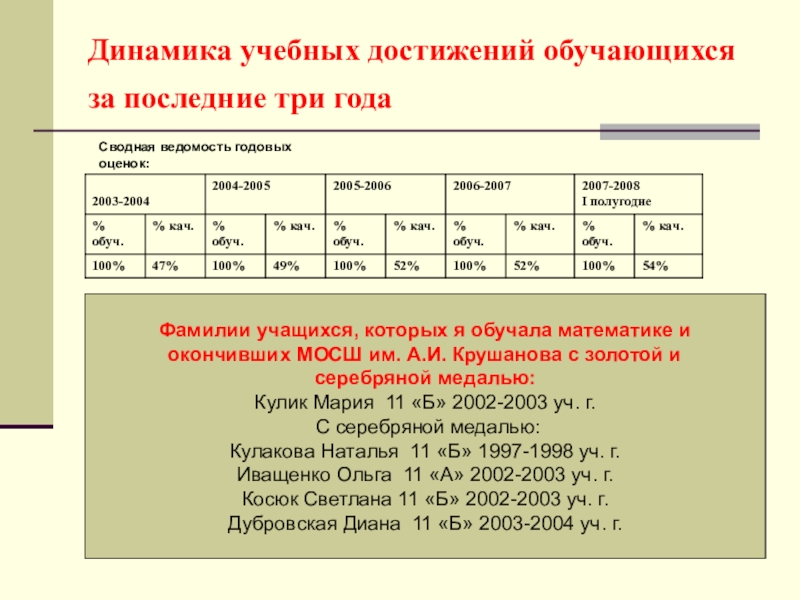 Фамилии учащихся, которых я обучала математике и