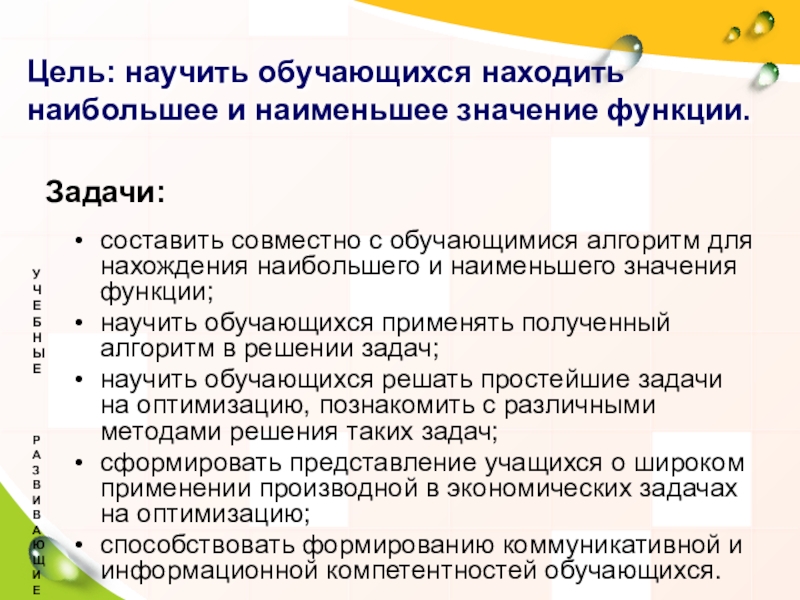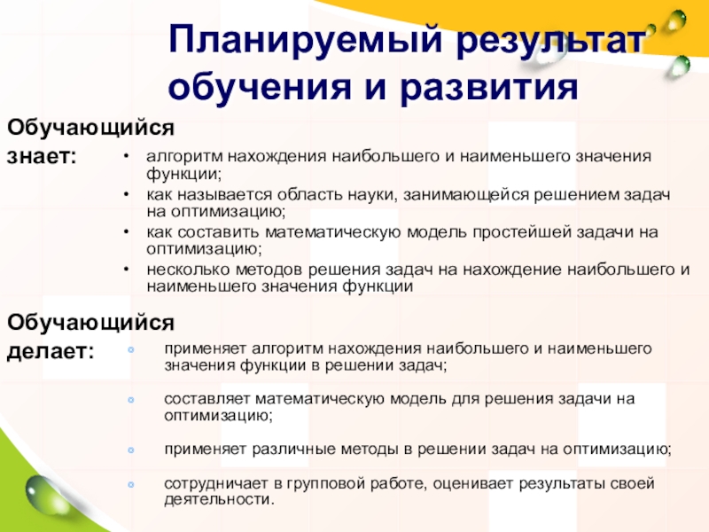 применяет алгоритм нахождения наибольшего и наименьшего значения функции в решении задач;