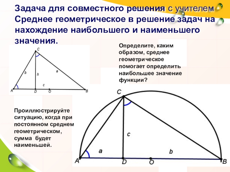 Определите, каким образом, среднее геометрическое помогает определить наибольшее значение функции?