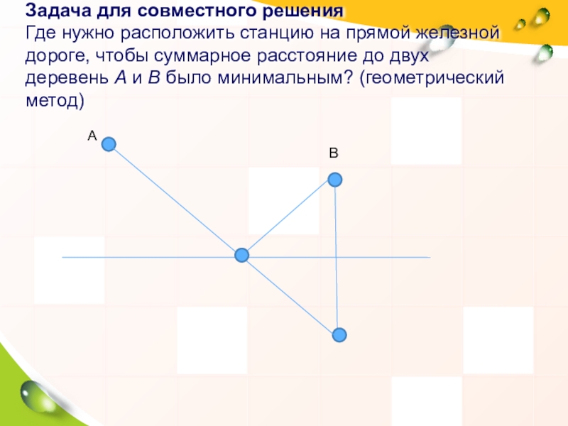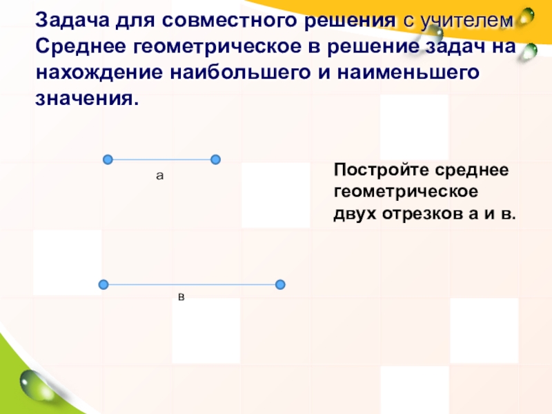 Постройте среднее геометрическое двух отрезков а и в.