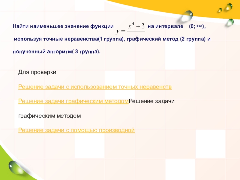 Решение задачи с использованием точных неравенств