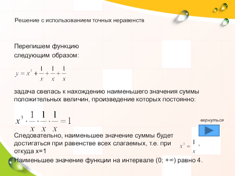 Решение с использованием точных неравенств