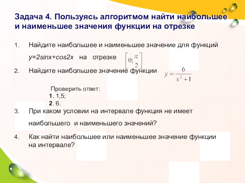 Как найти наибольшее или наименьшее значение функции на интервале?