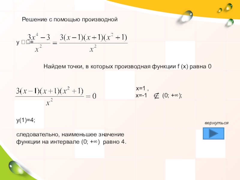 Решение задачи с помощью производной
