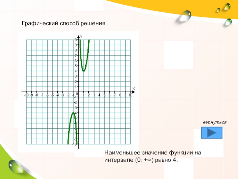 следовательно, наименьшее значение функции на интервале (0; +∞) равно 4.