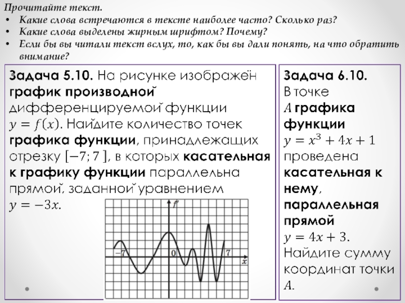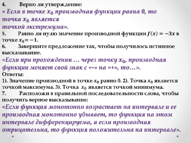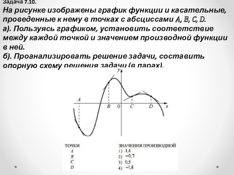 а). Пользуясь графиком, установить соответствие между каждой точкой и значением производной функции в ней.