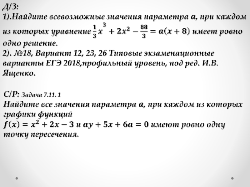 Слайд 266). Найти все значения параметра а, при каждом из которых уравнение