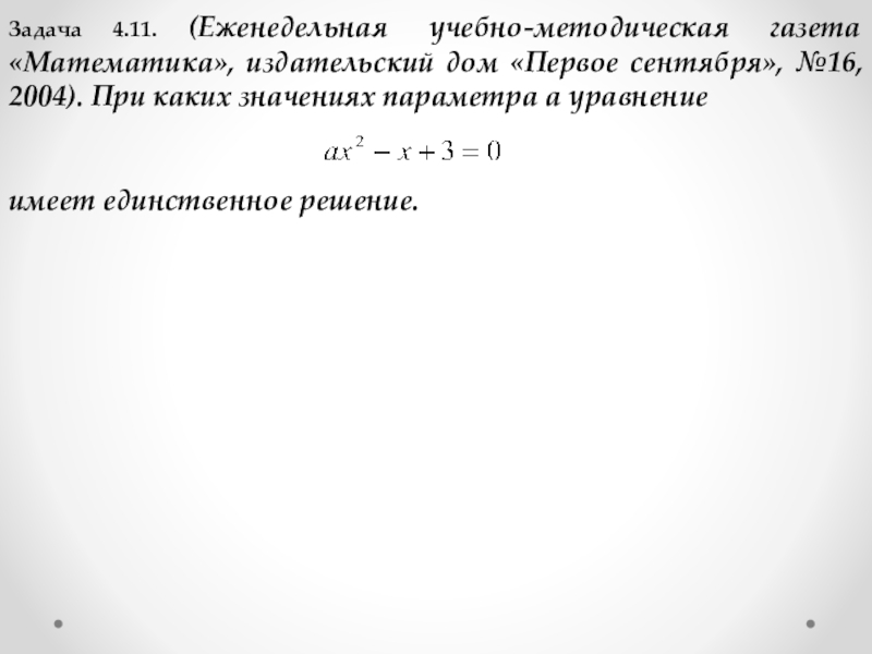 Слайд 31Задача 4.11. (Еженедельная учебно-методическая газета «Математика», издательский дом «Первое сентября», №16,
