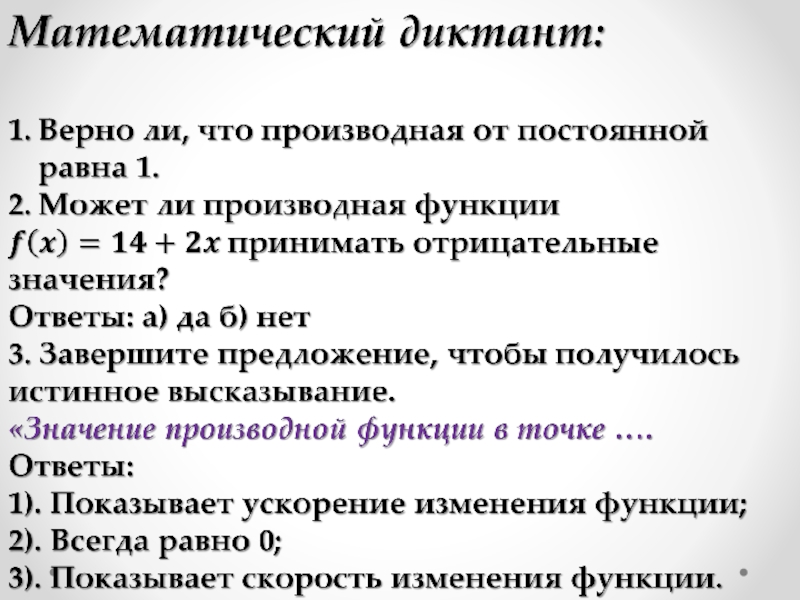 математике по теме «Производная. Свойства производной в заданиях ЕГЭ» по определенным темам в 10 классе.