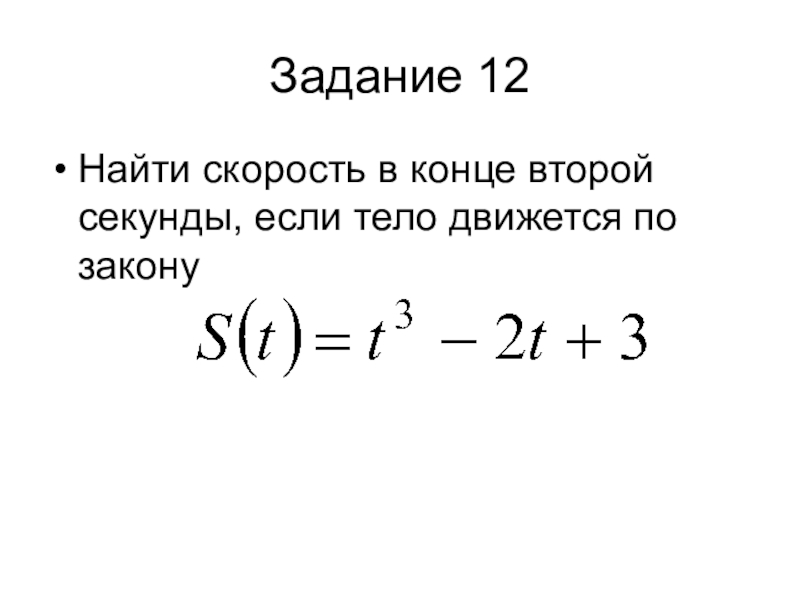 Задание 12Найти скорость в конце второй секунды, если тело движется по закону