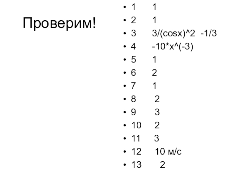 Проверим!1   12   13   3/(cosx)^2 -1/34   -10*х^(-3)5