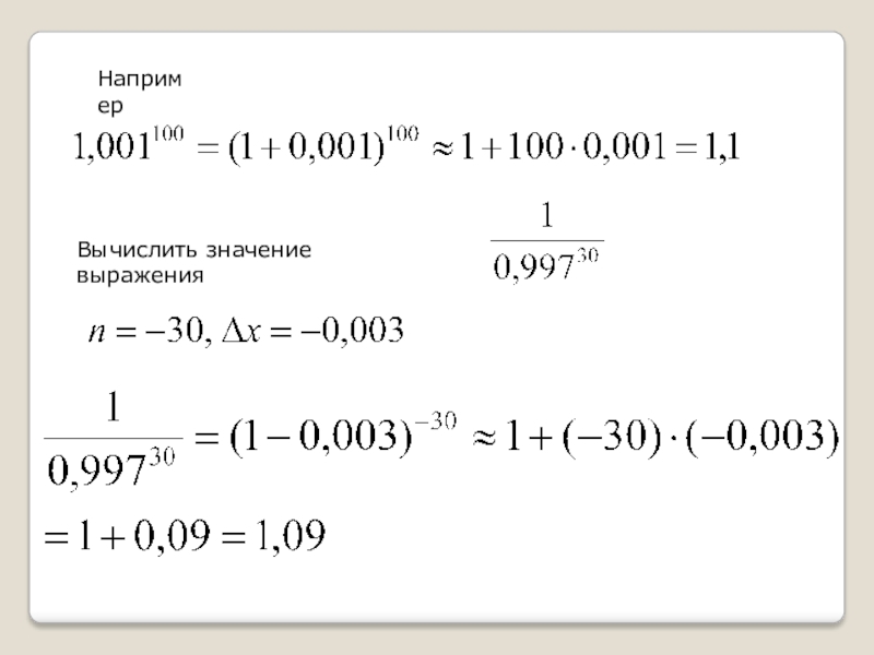 Слайд 21. Пусть, например, требуется вычислить приближенное значение функции