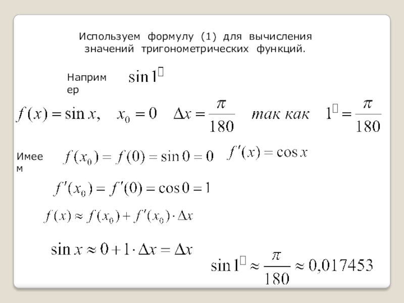 Слайд 1 Применение производной к приближенным вычислениям