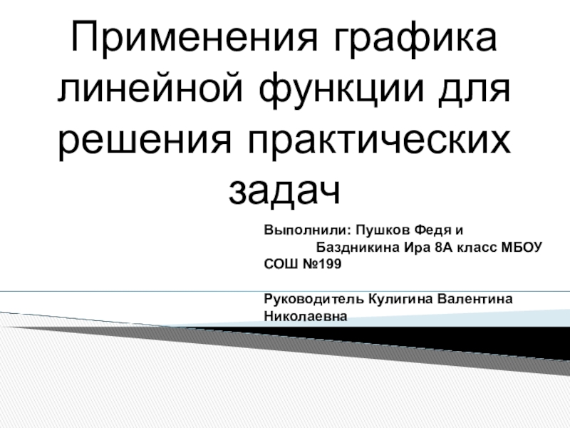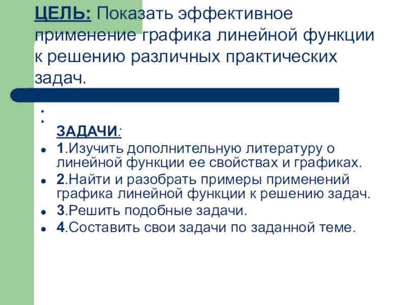 ЦЕЛЬ: Показать эффективное применение графика линейной функции к решению различных практических задач.