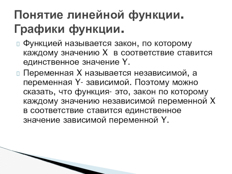 Понятие линейной функции. Графики функции.