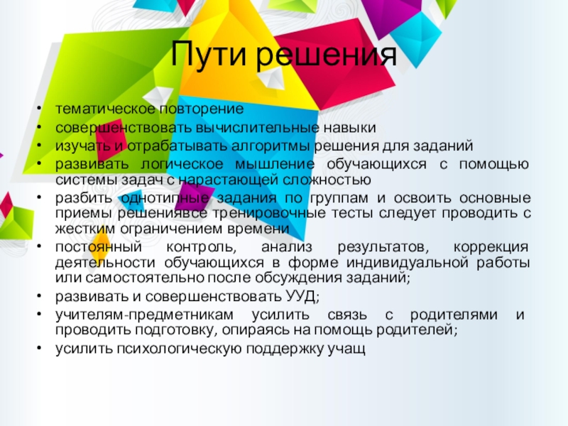 устойчивая привычка на списывание; не все обучающиеся усваивают школьную программу математического цикла на необходимом уровне;