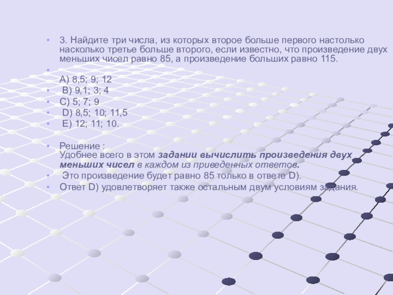 3. Найдите три числа, из которых второе больше первого настолько насколько