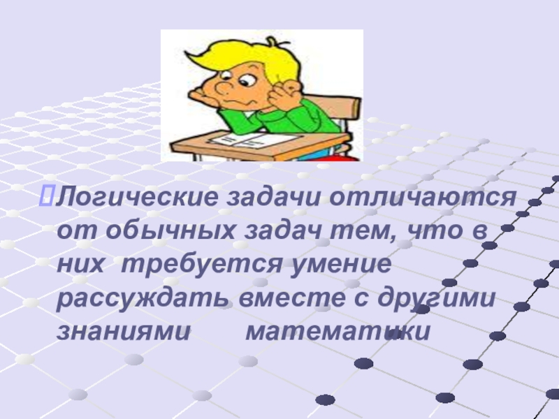 Логические задачи отличаются от обычных задач тем, что в них требуется